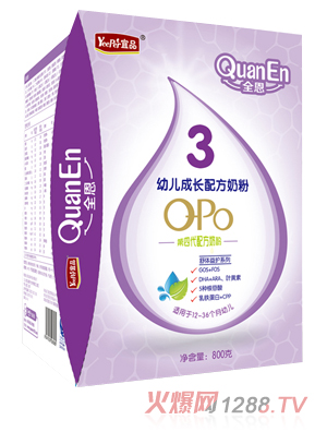 全恩奶粉吸收益護:添加GOS+FOS和L-肉堿。 復合益生元(GOS+ FOS):能促進changdao益生菌的增殖,維護changdao健康,促進消化吸收。 L-肉堿:有助于脂肪的消化吸收。