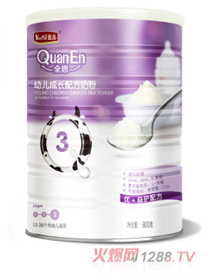 對bao--bao來說健康聰明成長是關鍵,時期是生長發(fā)育的黃金期,營養(yǎng)的有效的充足補充是必要,奶粉的選擇就應該選擇最優(yōu)質的產品!全恩奶粉秉承“只做自然運輸工”的制造理念,選用進口優(yōu)質奶源,采用四重優(yōu)+益護配方,專為中國bao--bao打造一款天然、安全、營養(yǎng)均衡的奶粉。