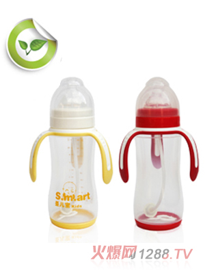 奶瓶是小bao--bao必備的生活用品,對于奶瓶的挑選來說,看材質,看是否防脹氣,看防摔性,圣兒寶致力于專業的哺喂用品的研究,特別推出的奶瓶系列產品,選用優質的PP、PESU等,安全放心,給bao--bao貼心的關愛。