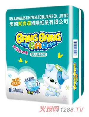 現在越來越多的人選擇為bao--bao選購嬰兒紙尿褲而代替了原來的傳統布,一次性紙尿褲的優點也慢慢的展示了出來,幫幫寶嬰兒紙尿褲輕薄柔軟,超強鎖水,質量非常的不錯。
